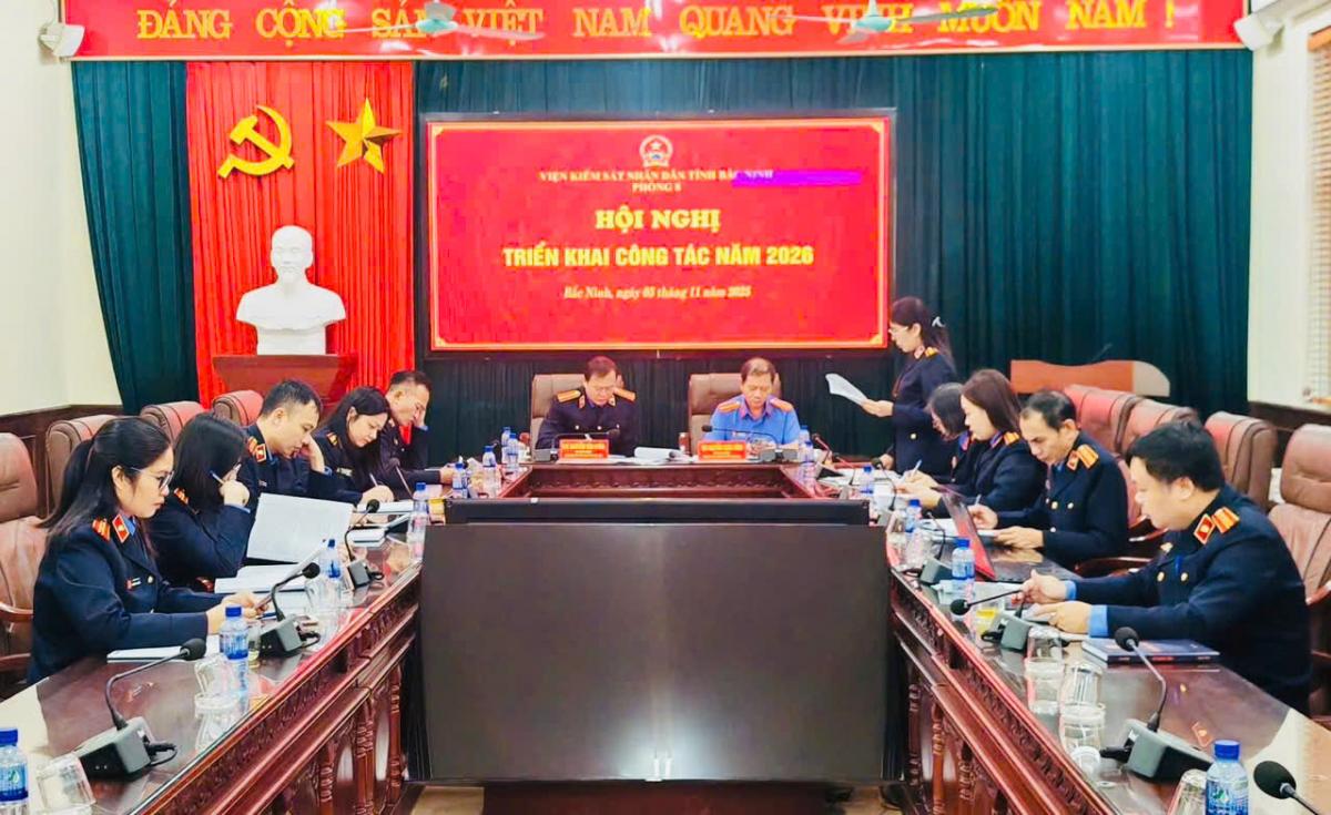 Sáng ngày 05/11/2025, Phòng Kiểm sát giam giữ và thi hành án VKSND tỉnh Bắc Ninh (Phòng 8) đã tổ chức hội nghị triển khai nhiệm vụ công tác năm 2026. Tham dự và chỉ đạo có các đồng chí Phó Viện trưởng VKSND tỉnh Nguyễn Xuân Hồng, đồng chí Nguyễn Văn Uyên cùng toàn thể cán bộ, công chức Phòng 8.