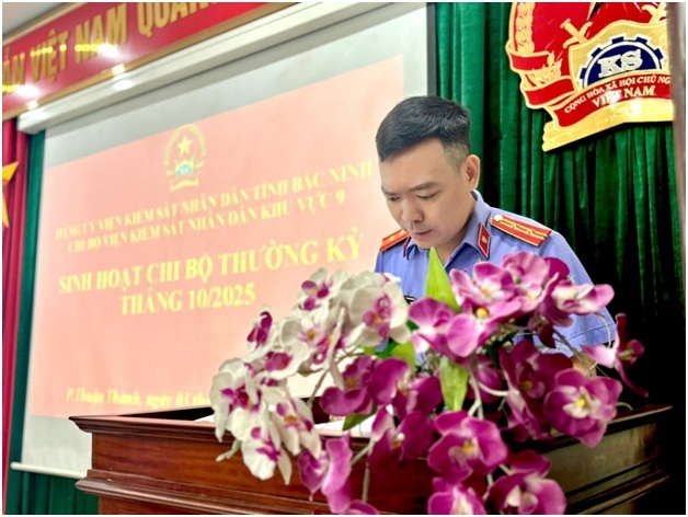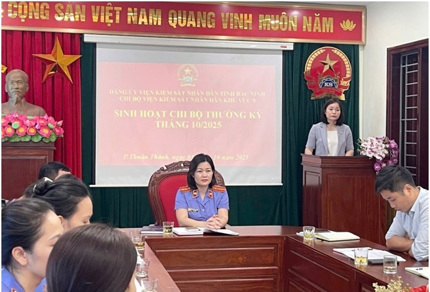 Thực hiện Quy chế làm việc của Chi ủy chi bộ, vào hồi 09 giờ ngày 03/10/2025 Chi bộ Viện KSND khu vực 9 – tỉnh Bắc Ninh tổ chức buổi sinh hoạt Chi bộ thường kỳ tháng 10/2025.