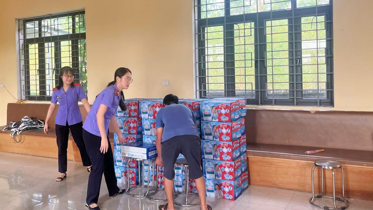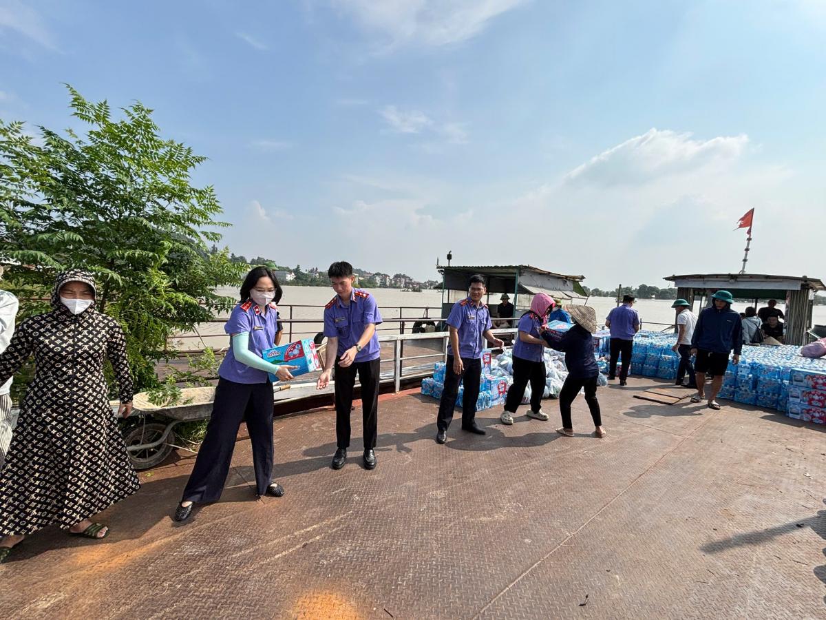 Ngay trong ngày 11/10/2025, Đoàn cơ sở VKSND tỉnh Bắc Ninh đã nhanh chóng liên hệ với chính quyền địa phương, kịp thời có mặt hỗ trợ người dân tại phường Vân Hà và xã Bố Hạ. Trong đó, thành lập 02 đoàn phối hợp tiếp tế lương thực, nước uống cho người dân tại 2 địa phương: đoàn thứ nhất gồm các Chi đoàn VKSND tỉnh, Chi đoàn VKSND khu vực 1, 3, 4, 5 hỗ trợ tại xã Bố Hạ; đoàn thứ hai gồm các Chi đoàn VKSND khu vực 2, 6, 7, 8, 9 hỗ trợ tại phường Vân Hà. Đoàn đã ủng hộ, vận chuyển 80 thùng nước sạch và 30 thùng sữa tươi (tổng giá trị là 20 triệu đồng) đến nhân dân vùng lũ; góp phần chia sẻ khó khăn, động viên tinh thần người dân nơi đây.