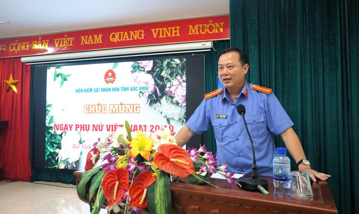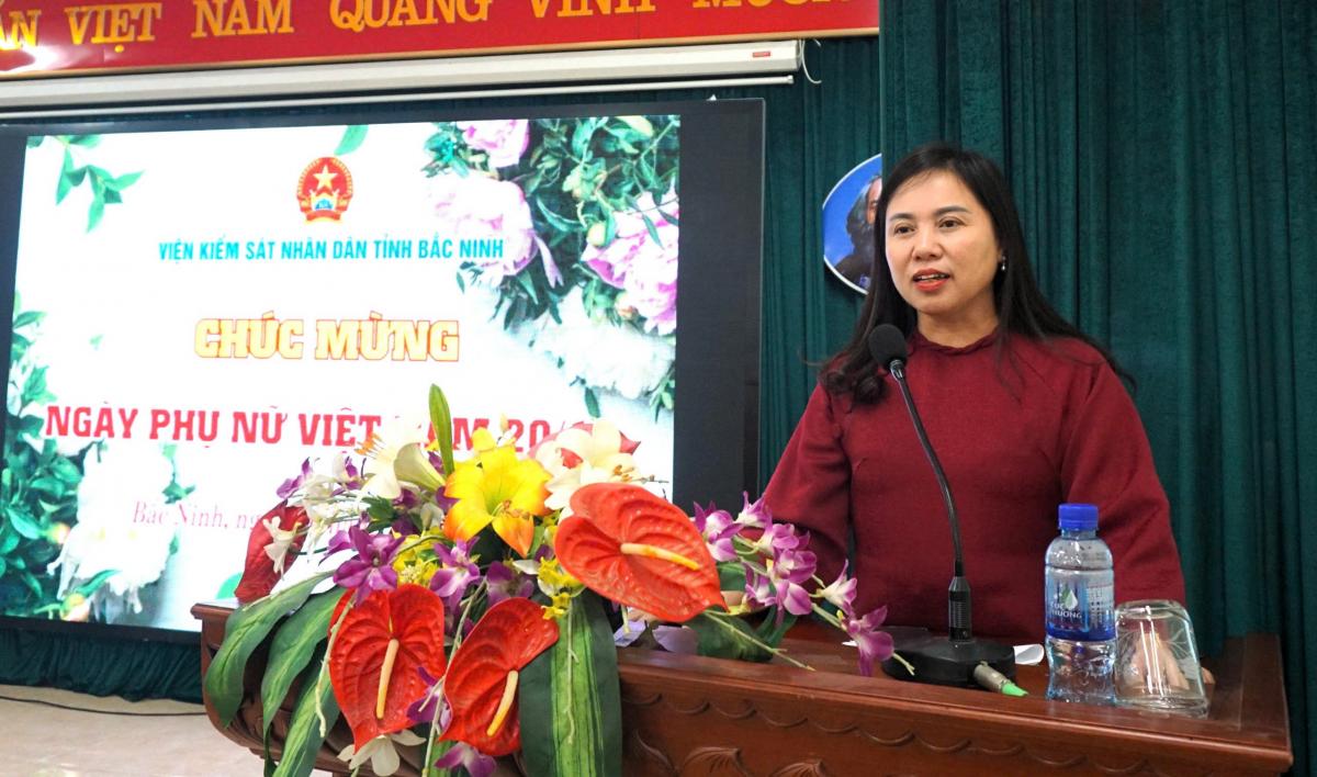 Đặc biệt, trong công cuộc xây dựng và bảo vệ pháp luật, những nữ Kiểm sát viên, Kiểm tra viên, chuyên viên đã có những đóng góp quan trọng, thầm lặng, vừa đảm đương tốt công việc cơ quan, vừa chu toàn vai trò người vợ, người mẹ trong gia đình. Đồng chí mong muốn chị em tiếp tục phát huy những phẩm chất tốt đẹp, không ngừng nâng cao năng lực chuyên môn, nghiệp vụ, đoàn kết, đóng góp nhiều hơn nữa vào sự phát triển chung của ngành Kiểm sát Bắc Ninh.