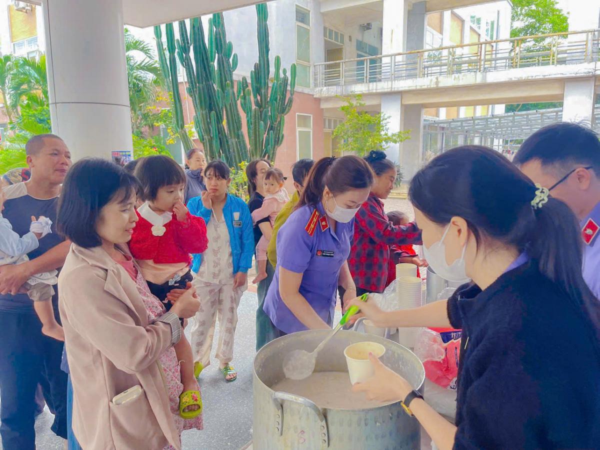 Chỉ chưa đầy 01 giờ đã có 200 suất cháo được phát tới tay các bệnh nhi và người nhà. Từng cốc cháo thơm ngon và đầy đủ chất dinh dưỡng, qua sự tận tâm của những đoàn viên Chi đoàn Viện KSND tỉnh và Chi đoàn Viện KSND khu vực 1 đã truyền hơi ấm cho các bệnh nhân có hoàn cảnh khó khăn đang điều trị tại đây, góp phần động viên tinh thần, hỗ trợ bệnh nhân và người nhà bệnh nhân có hoàn cảnh khó khăn yên tâm điều trị để mau chóng khỏi bệnh.