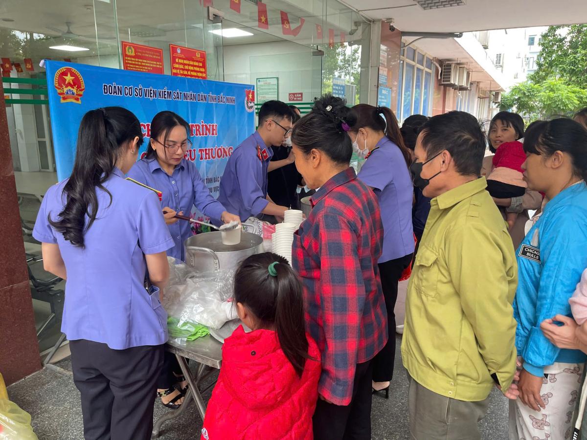 Chương trình “Nồi cháo yêu thương” của Chi đoàn Viện KSND tỉnh được triển khai từ năm 2023 và duy trì tổ chức hàng tháng Bệnh viên Sản Nhi tỉnh Bắc Ninh là một trong những hoạt động có ý nghĩa thiết thực, chứa đựng tình yêu thương, chia sẻ, tạo sức lan tỏa mạnh mẽ về giá trị nhân văn, nét đẹp văn hóa, tinh thần tương thân, tương ái trong cộng đồng. Kinh phí duy trì nồi cháo do cán bộ, công chức, người lao động trong cơ quan tự nguyện đóng góp, với mong muốn thực hiện các hoạt động vì an sinh xã hội.