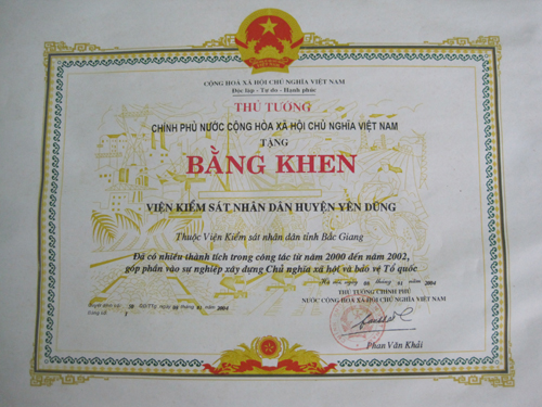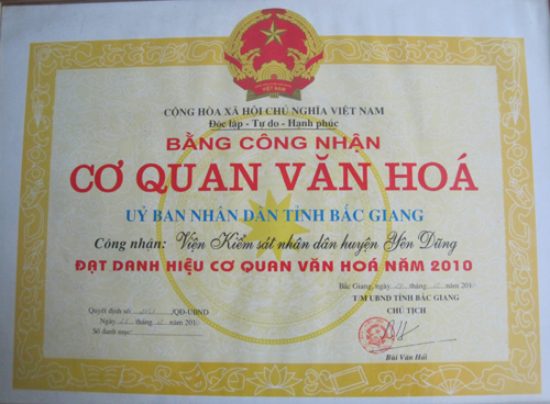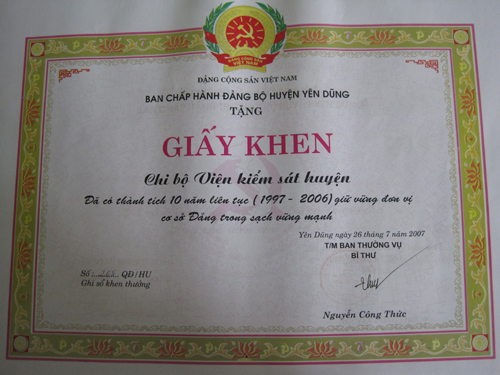 CÁC THÀNH TÍCH TIÊU BIỂU CỦA VKSND HUYỆN YÊN DŨNG
