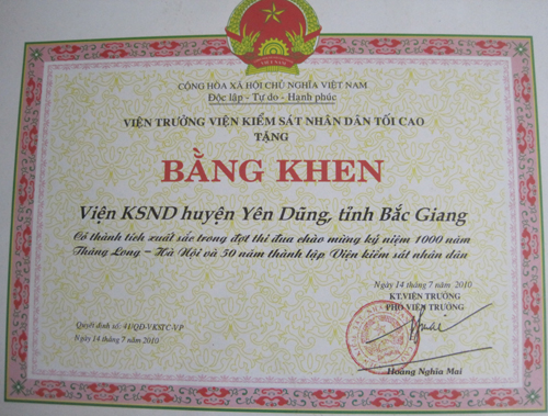 Bằng khen của VKSND tối cao năm 2010